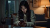 夜の部屋でスマホを見つめながら、年齢や結婚に対する焦りや不安を感じている日本人女性のイメージ画像 大人の婚活ノウハウ